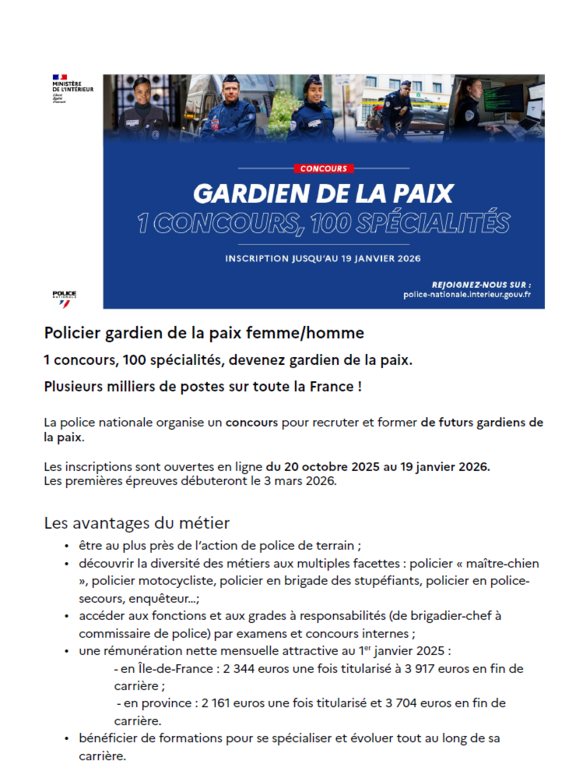 1 concours, 100 spécialités, devenez gardien de la paix.