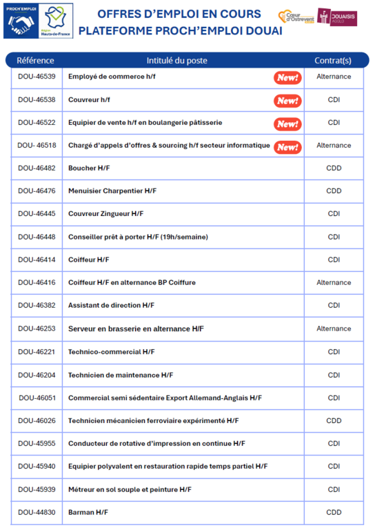 Propositions d'emploi avec PROCH’Emploi Douaisis